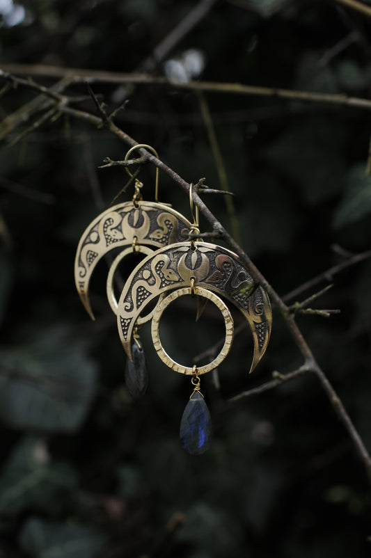 Boucles d'oreilles grandes Nyx gravées avec Labradorites