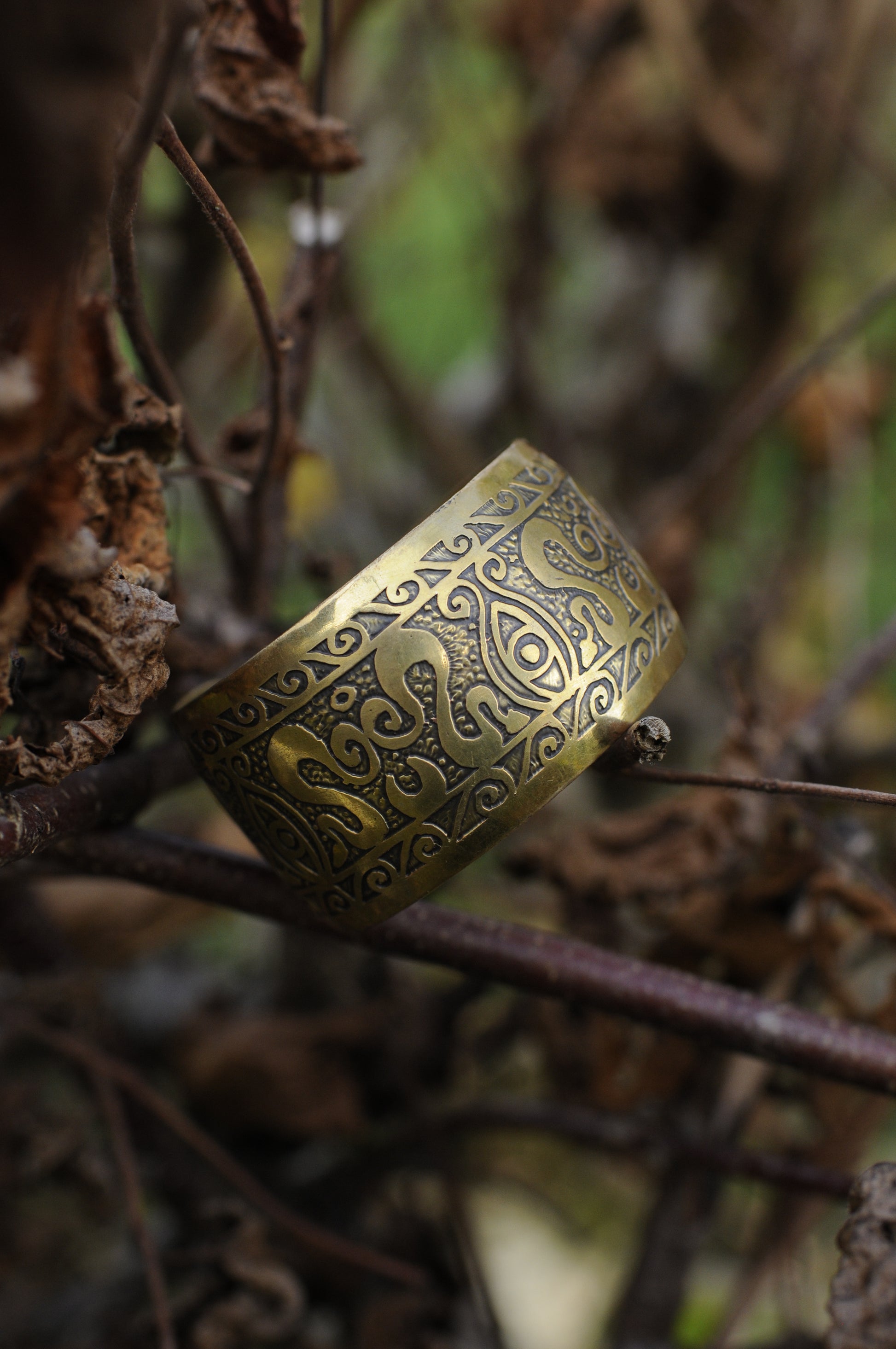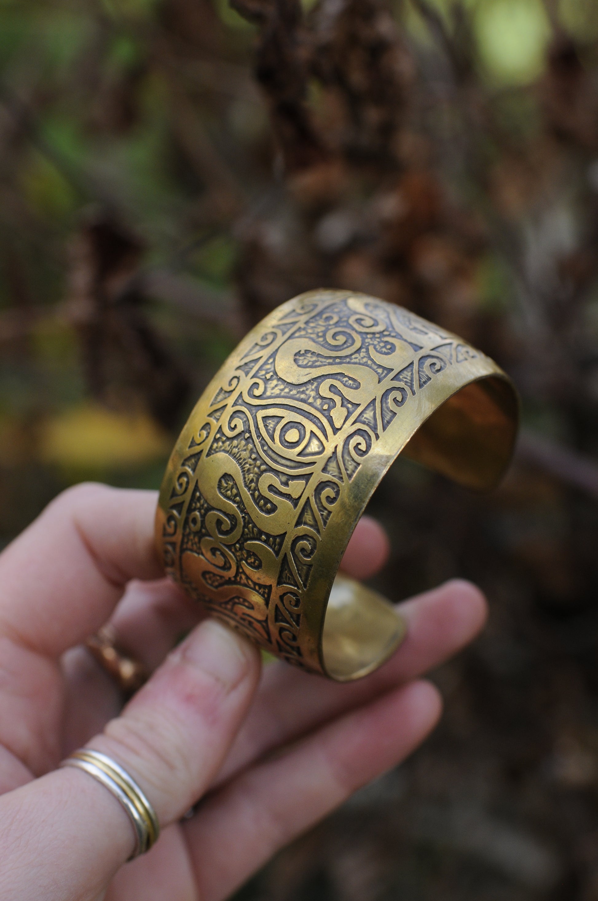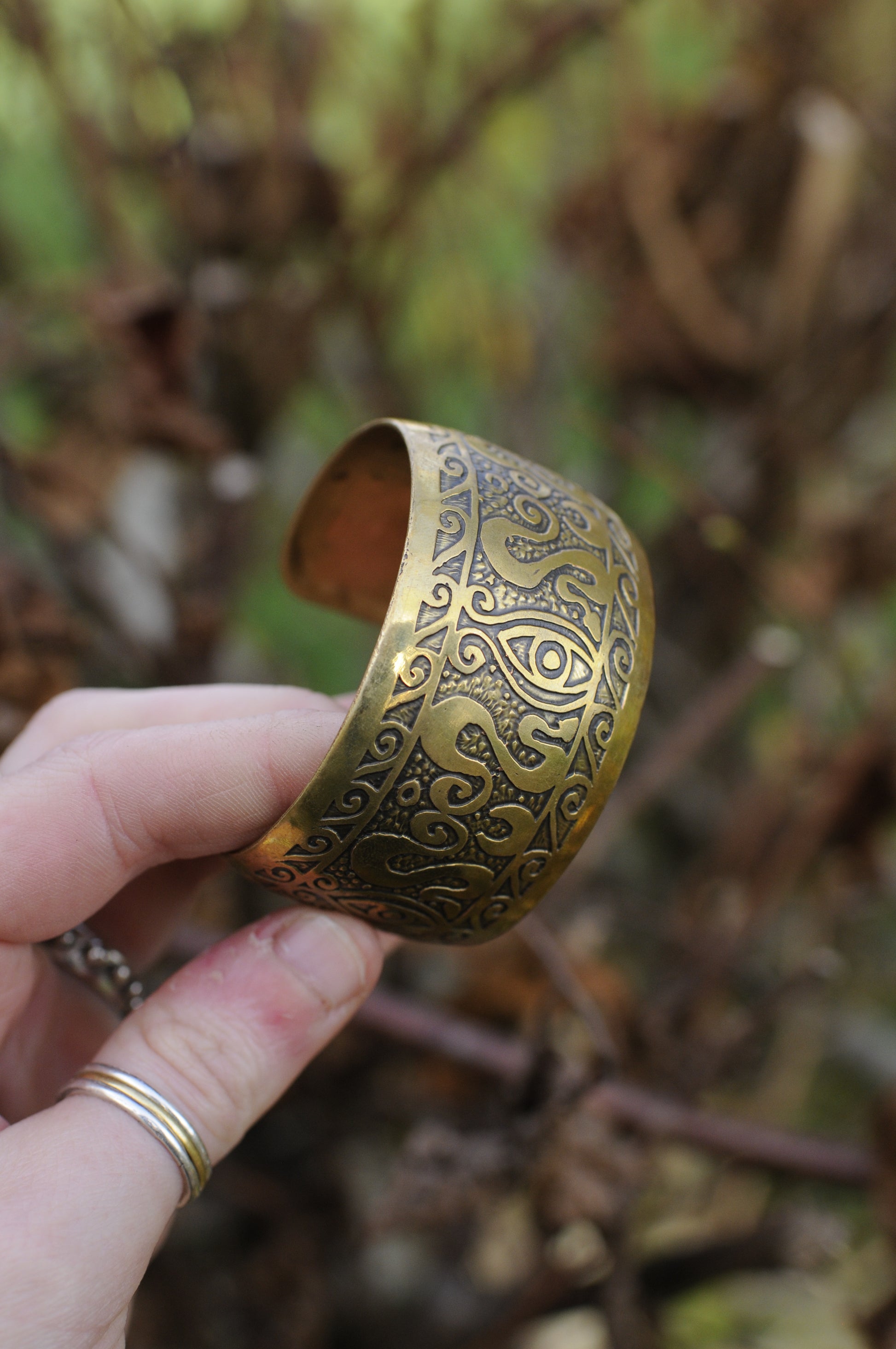 Bracelets laiton gravé bombé oeil serpents