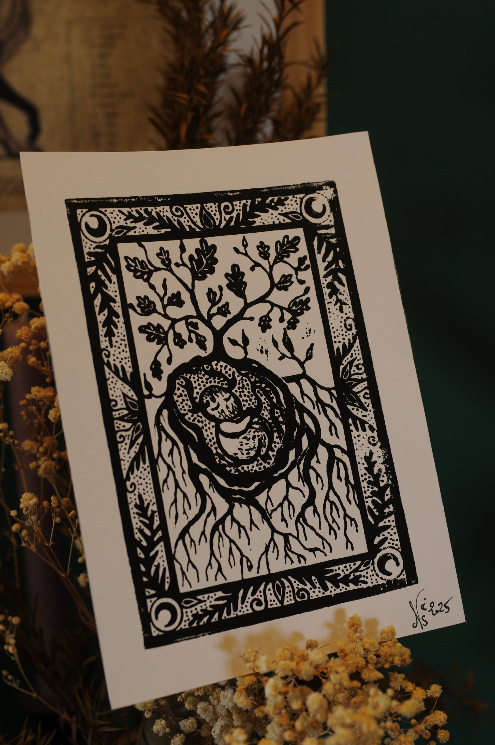 Tirage sur papier de gravure en laiton ( comme une linogravure ), chaque tirage est unique et peu présenter des différences avec ceux en photo.